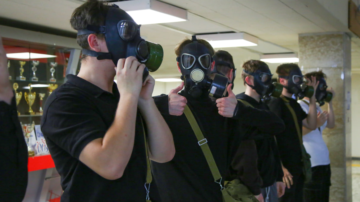 На занятиях по основам военной подготовки прошел тренинг по пользованию противогазами.