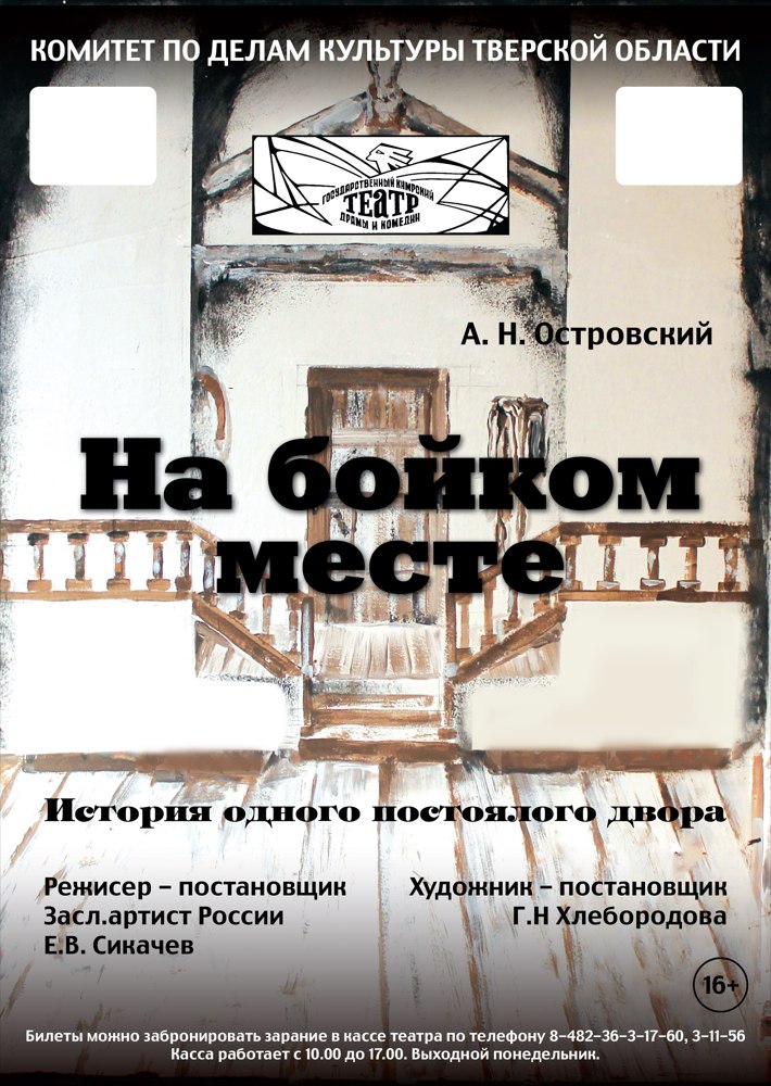 25 февраля Кимрский театр драмы и комедии сыграет на сцене ГУД спектакль «На бойком месте» по Александру Островскому.